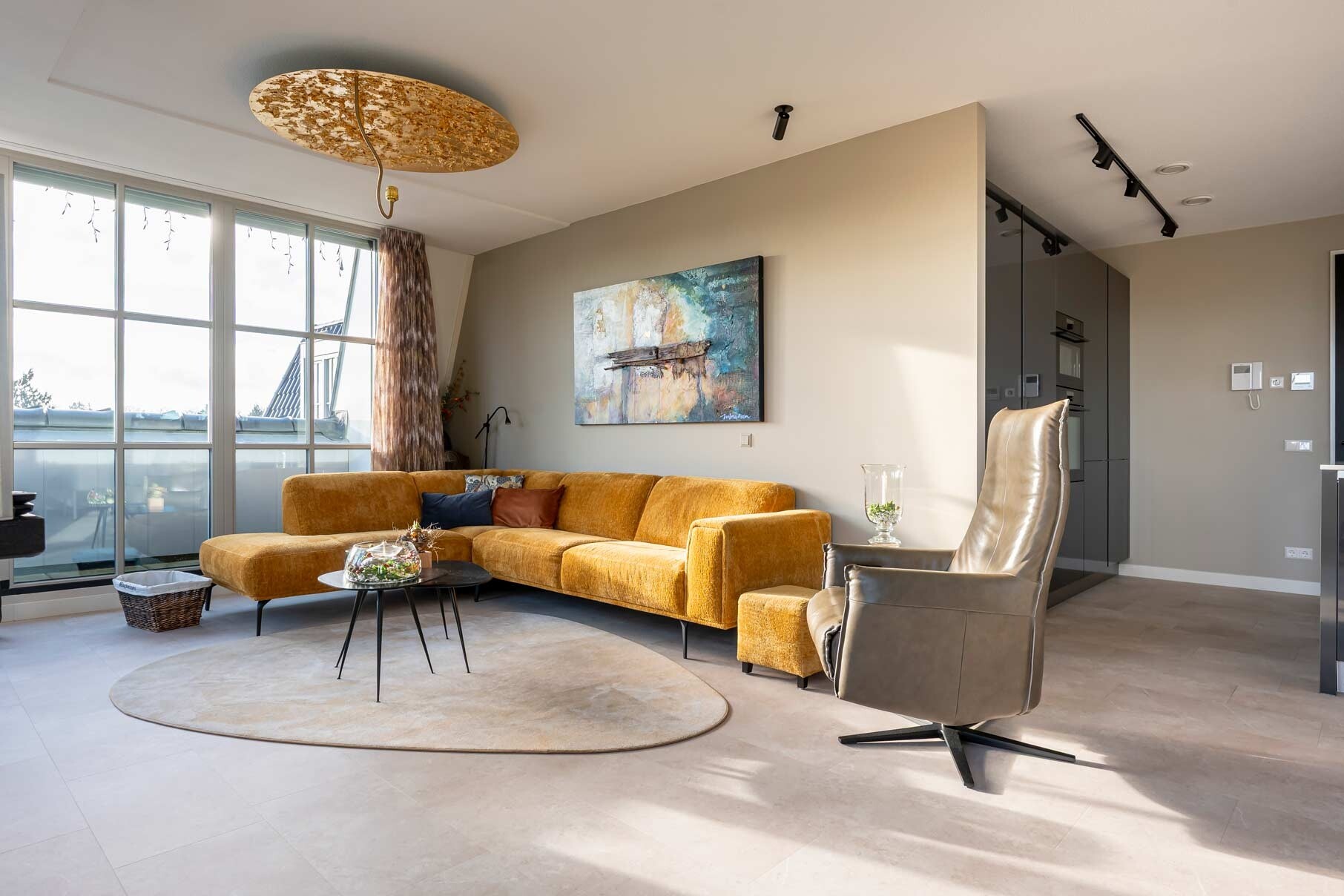 De ultieme zithoek: Waar de hoekbank en relaxstoel elkaar vinden.