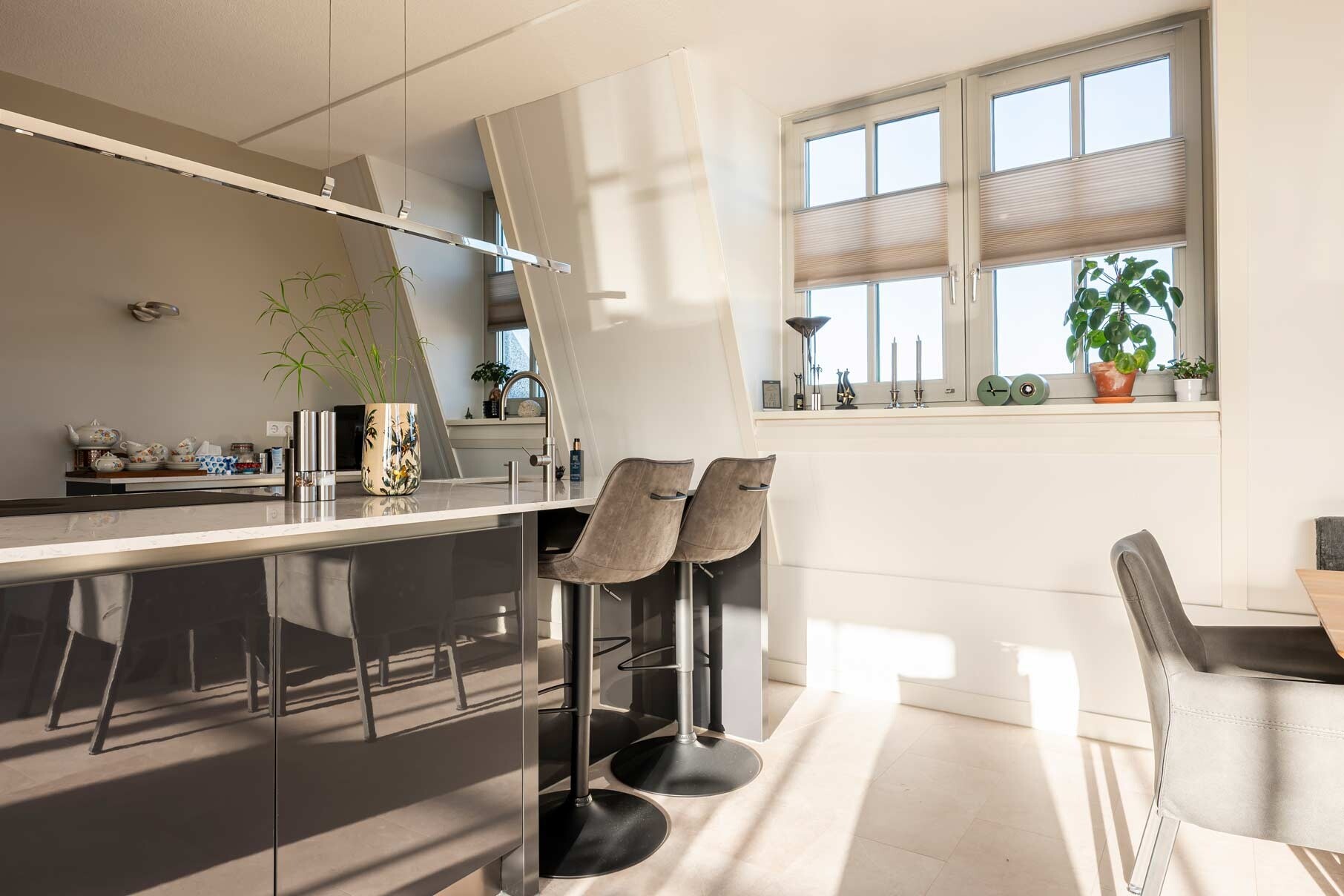 Of u nu kiest voor een modern design of een landelijke uitstraling die past bij de sfeer van de Veluwe, de juiste stoffering en kleurnuances verbinden de meubelstukken tot één geheel. Bij de volledige projectinrichting van dit appartement in Nunspeet centrum staat deze harmonie centraal: een plek waar u gezellig samen kunt zijn, maar ook in alle rust kunt ontspannen in uw eigen relaxfauteuil.