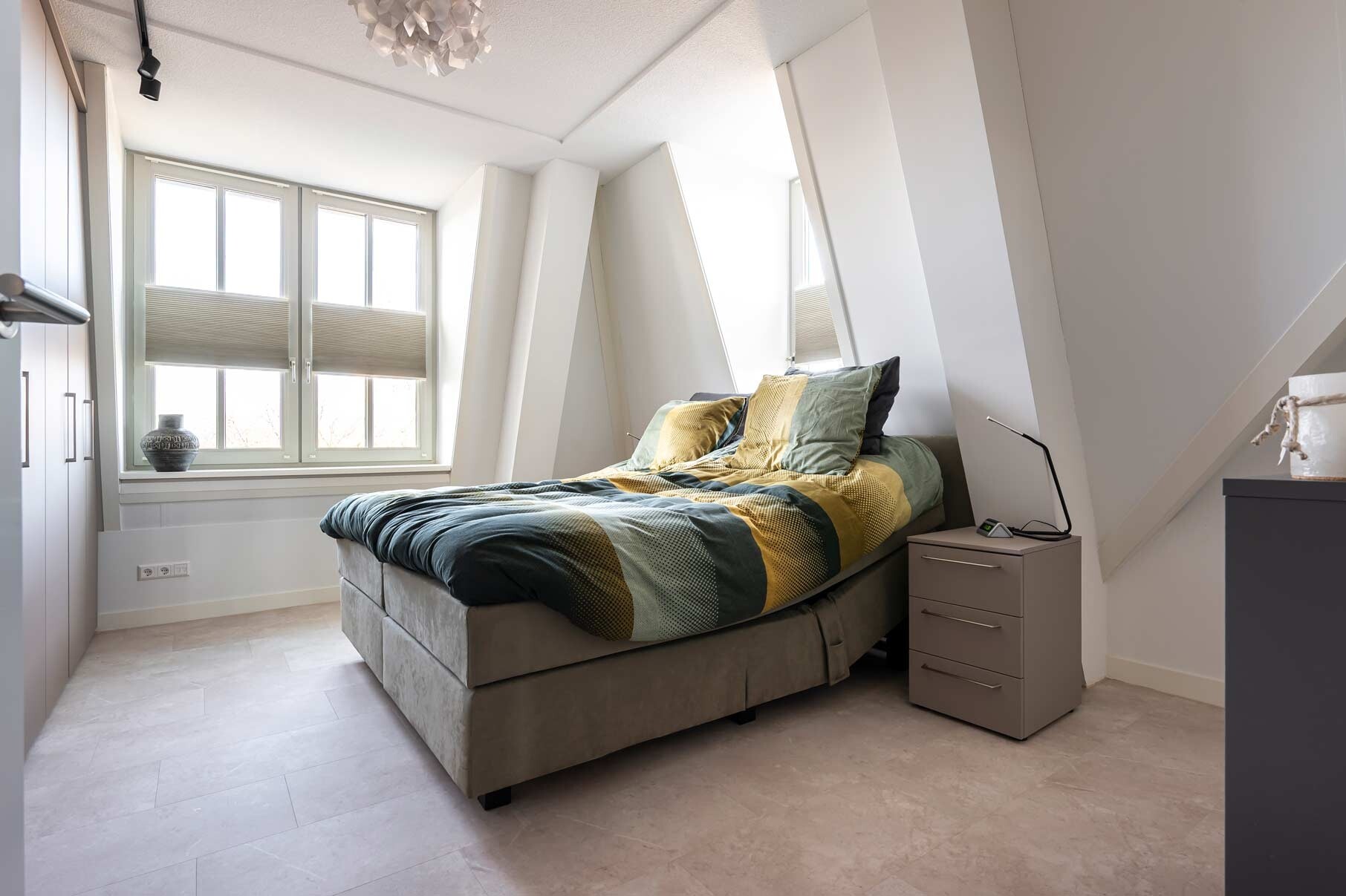 Tijdens de samenstelling hebben we nauwkeurig gemeten en rekening gehouden met alle details: van plinten tot overgangen tussen kamers. Het resultaat is een strakke, naadloze vloer die door het hele appartement doorloopt en visuele rust creëert. Deze doorlopende basis verbindt alle ruimtes en vormt het canvas voor de verdere inrichting.